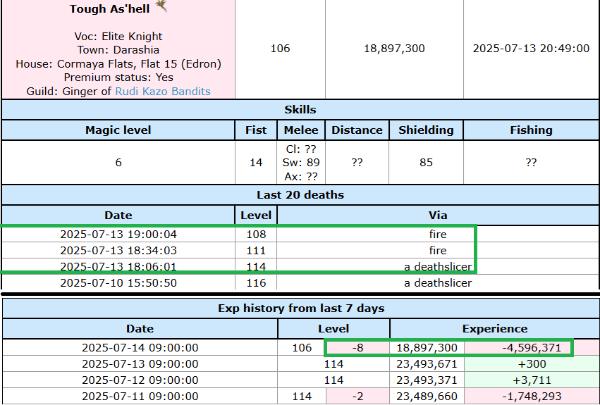 Niedziela 13.07.2025 okazała się pechowa dla tibiantisowego poszukiwacza przygód.