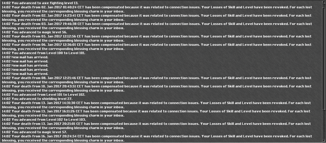 Jan 13 2017, 16:11:26 CET Died at Level 81 by a giant spider.